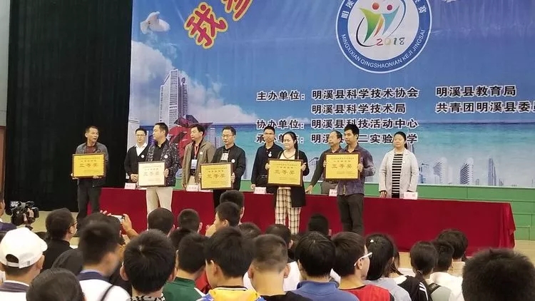 經過一天緊張激烈的比賽和裁判員公平、公正、公開的評定,分別評出了個人一等獎29個、二等獎59個、三等獎112個,團體一等獎2 個、二等獎3個、三等獎5個。其中在科學幻想繪畫、科技創(chuàng)新成果這兩個項目評選出的獲獎作品將被選送參加2018年三明市科技創(chuàng)新大賽。