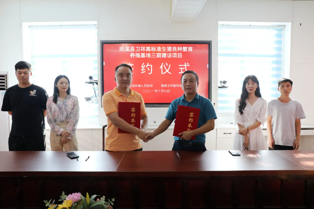 該項目由福建衛(wèi)祥畜牧發(fā)展有限公司投資建設,屬明溪縣重點項目。擬于2021年12月動工建設,預計建設工期8個月,建設引種隔離舍700平方米、公豬舍2500平方米、育肥豬舍10000多平方米、環(huán)保設施15000多平方米及消毒室等附屬工程;并配置自動通風系統(tǒng)、降溫系統(tǒng)、喂料系統(tǒng)、采精包裝系統(tǒng)、生豬芯片識別掃描系統(tǒng)等一整套全智能化進口設備。